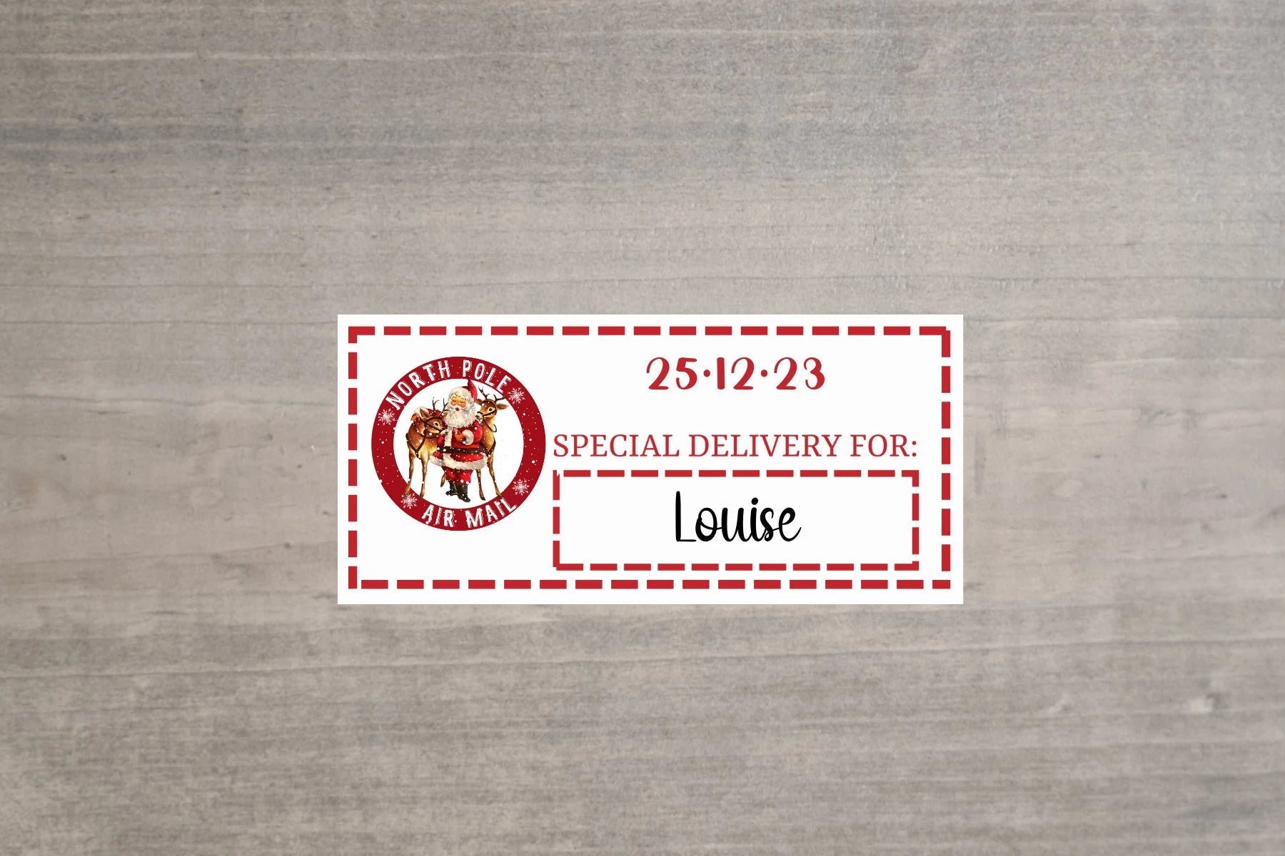 Introducing our personalised special delivery stickers, perfect for adding a touch of festive cheer to your Christmas presents! These customisable stickers are designed to make your gifts stand out from the rest. With their vibrant colors and unique designs, they will surely bring a smile to the recipient's face.