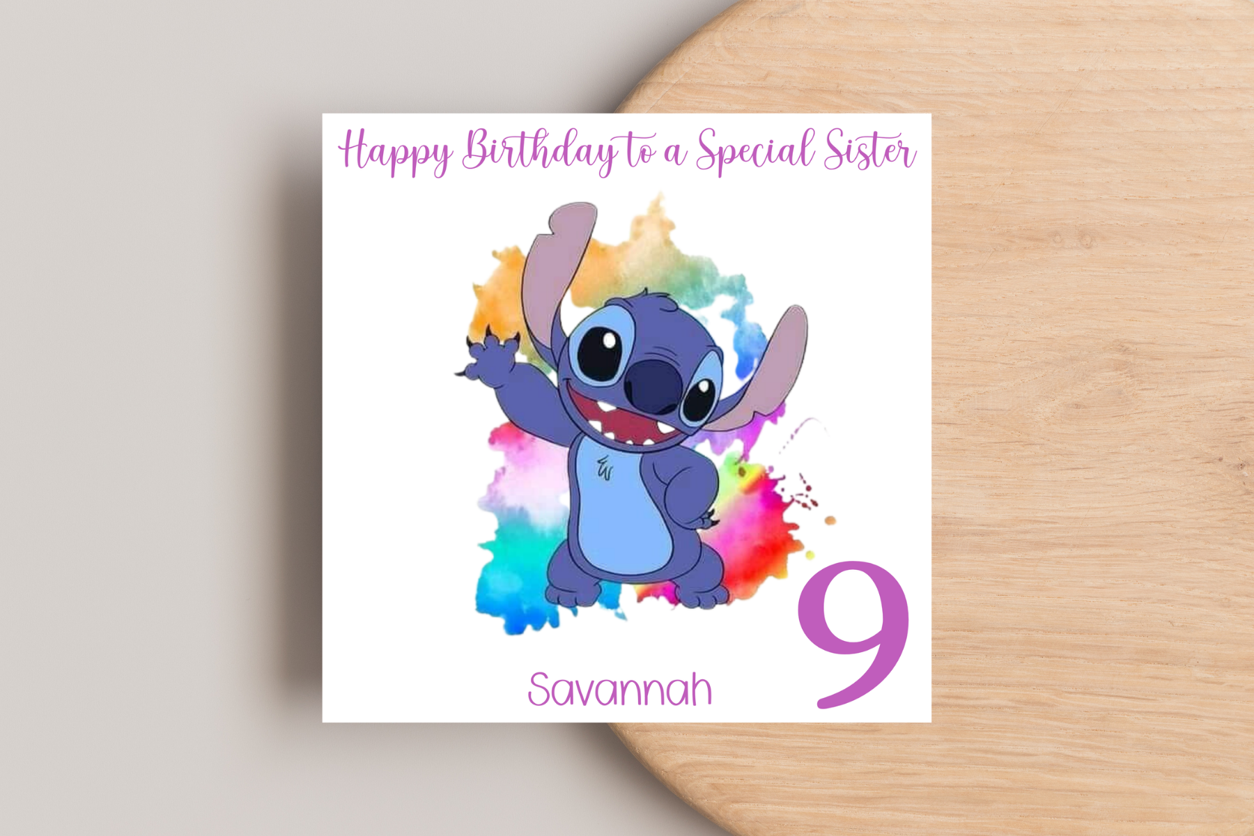 Celebrate your little one's birthday with this adorable Lilo and Stitch themed birthday card! The clear and bright design captures the playful spirit of Lilo and Stitch, making it perfect for Disney fans. Personalise the card with the recipient's name and age for an extra special touch. This high-quality greeting card is carefully crafted to bring joy and smiles on their special day. It's a wonderful way to show your love and send warm wishes. Order now and make their birthday unforgettable!