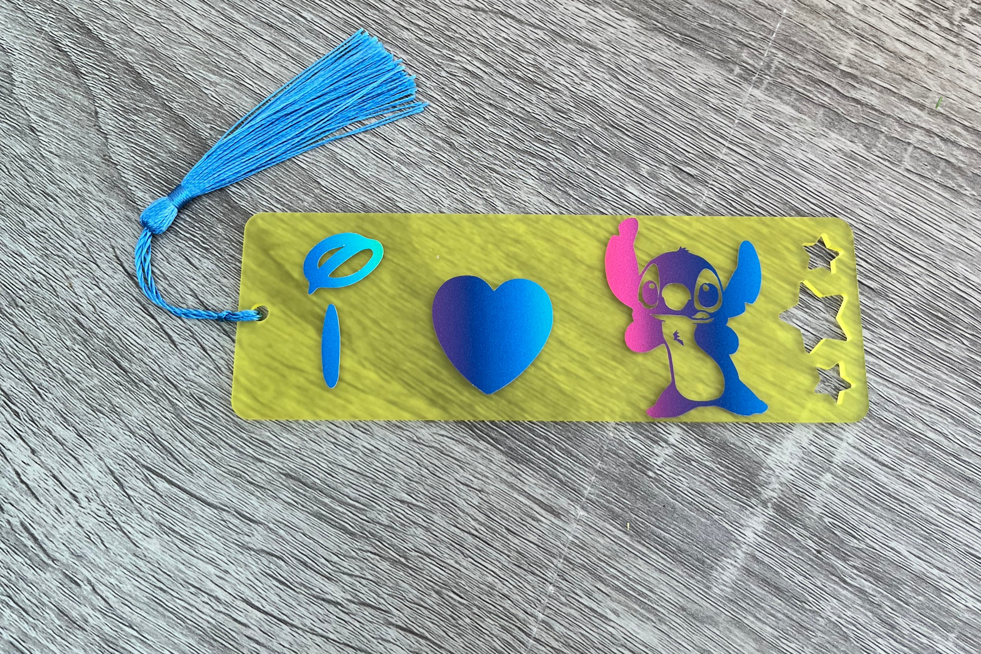 Bring a touch of whimsy and charm to your reading adventures with this adorable I Love Stitch acrylic bookmark. Featuring a cute rainbow design, this bookmark is perfect for stitch lovers, book lovers, readers, children, and Disney fans. Made from high-quality acrylic, it is durable and lightweight, ensuring it won't damage your pages. This unique design sets it apart from other bookmarks, making it a delightful gift or personal accessory. Keep your place in style and add a sprinkle of magic to your reading experience with this I Love Stitch acrylic bookmark.