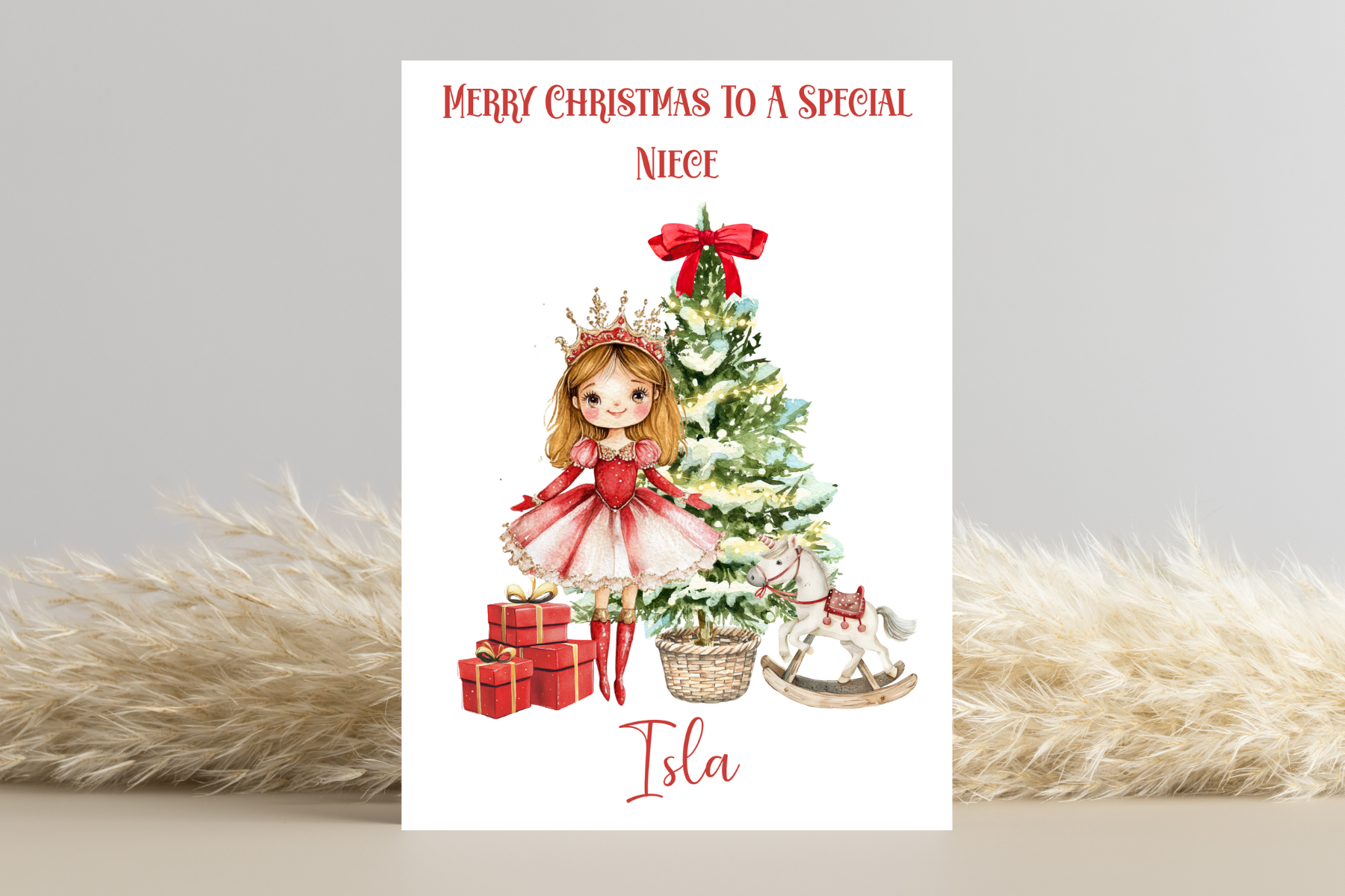 This Personalised Sugarplum Fairy Christmas Card features a charming fairy design and can be customised with six different hair color options. Spread joy and warmth this holiday season with a unique and thoughtful card personalized just for your loved ones.