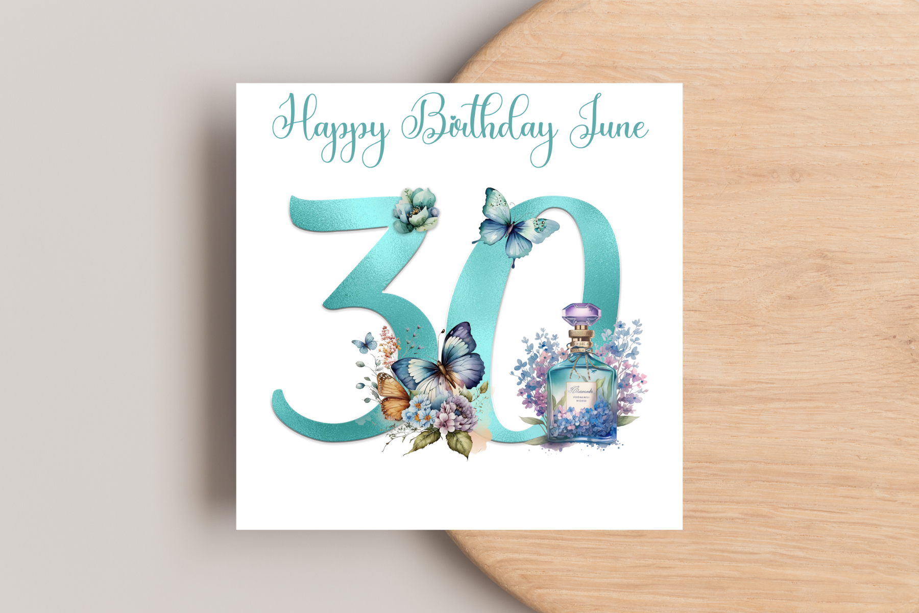 Celebrate milestone birthdays with this Personalised teal Perfume Birthday Card, featuring elegant butterflies and a delicate perfume design. Its thoughtful customisation adds a special touch, making your loved one feel truly cherished on their special day. Perfect for sending warm wishes and lasting memories.