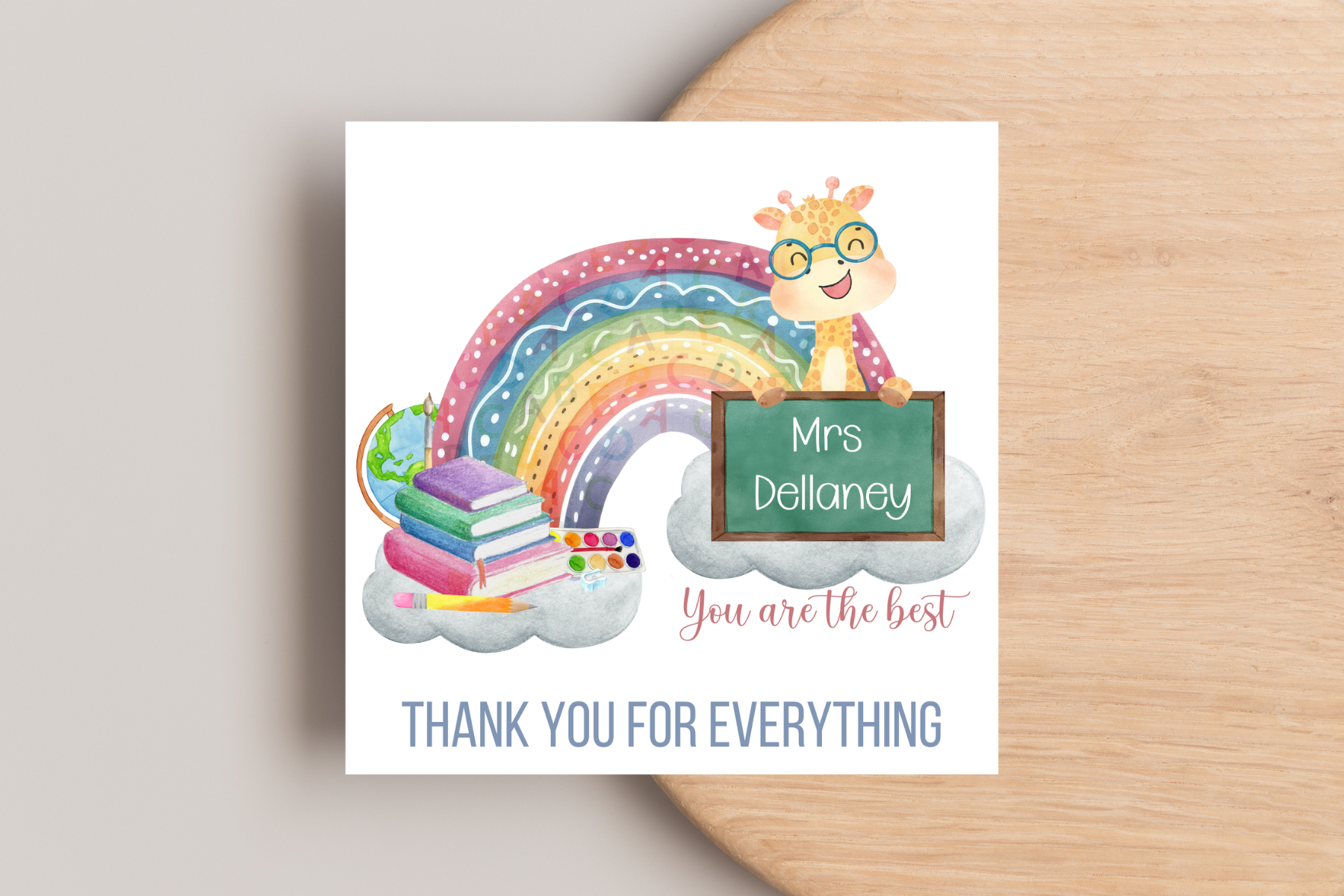 Celebrate the end of the school year with our personalised thank you teacher cards. Show your gratitude to those amazing educators who made a difference in your child's life. Our cards feature bright and vibrant designs, adding a touch of joy to express your appreciation. Each card can be customised with the teacher's name, making it a truly special keepsake. Whether it's for school leavers or for teachers who provided extra help, these cards are the perfect way to say thank you. Make the end of year memorable with our fabulous school-themed designs. Order yours today and let your teacher know how much they are valued!
