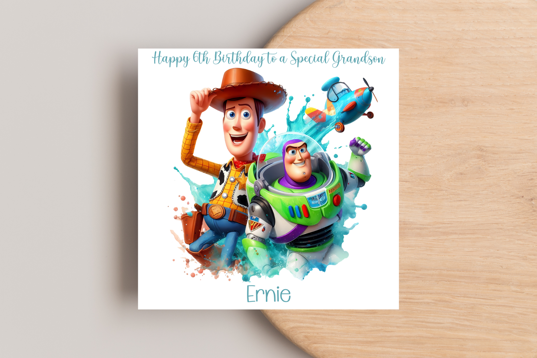Celebrate your little one's special day with this delightful Toy Story Birthday Card! Featuring beloved characters like Woody, Buzz, and their friends, this personalised card is sure to bring a smile to their face. Each card is carefully crafted with attention to detail, allowing you to customise it with your child's name and age for a truly unique touch. Made with high-quality materials, this card is the perfect way to make their birthday extra memorable. Whether your child is a devoted Toy Story fan or you're looking for a charming card for a Pixar movie enthusiast, this Toy Story Birthday Card is an ideal choice. Order now and let the birthday adventure begin!