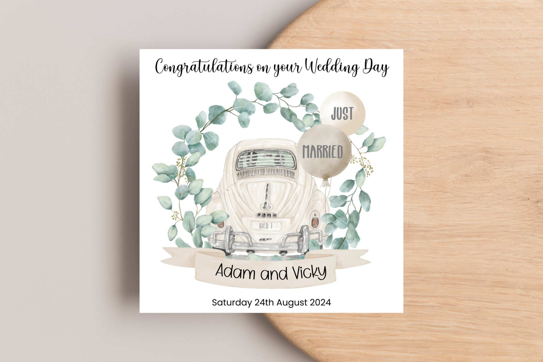 Personalised wedding day Car Just Married Balloons Card
