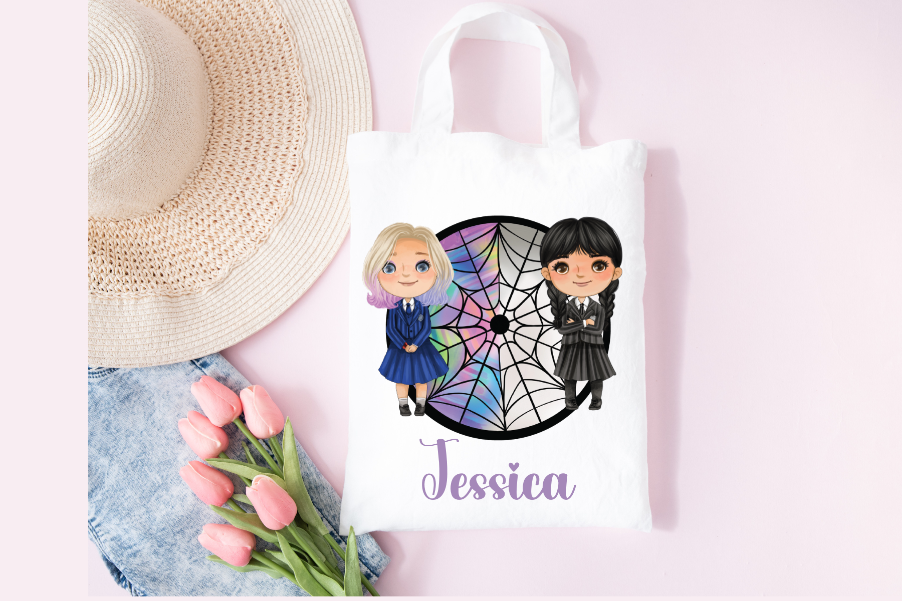 Introducing our delightful Personalised Wednesday Addams Tote Bag! Handcrafted with love, this charming tote features an adorable design. Add a touch of uniqueness by personalising it with your initials or name. Perfect for daily use, grocery shopping, or a day at the beach. This versatile tote will surely brighten up your day and make heads turn wherever you go!