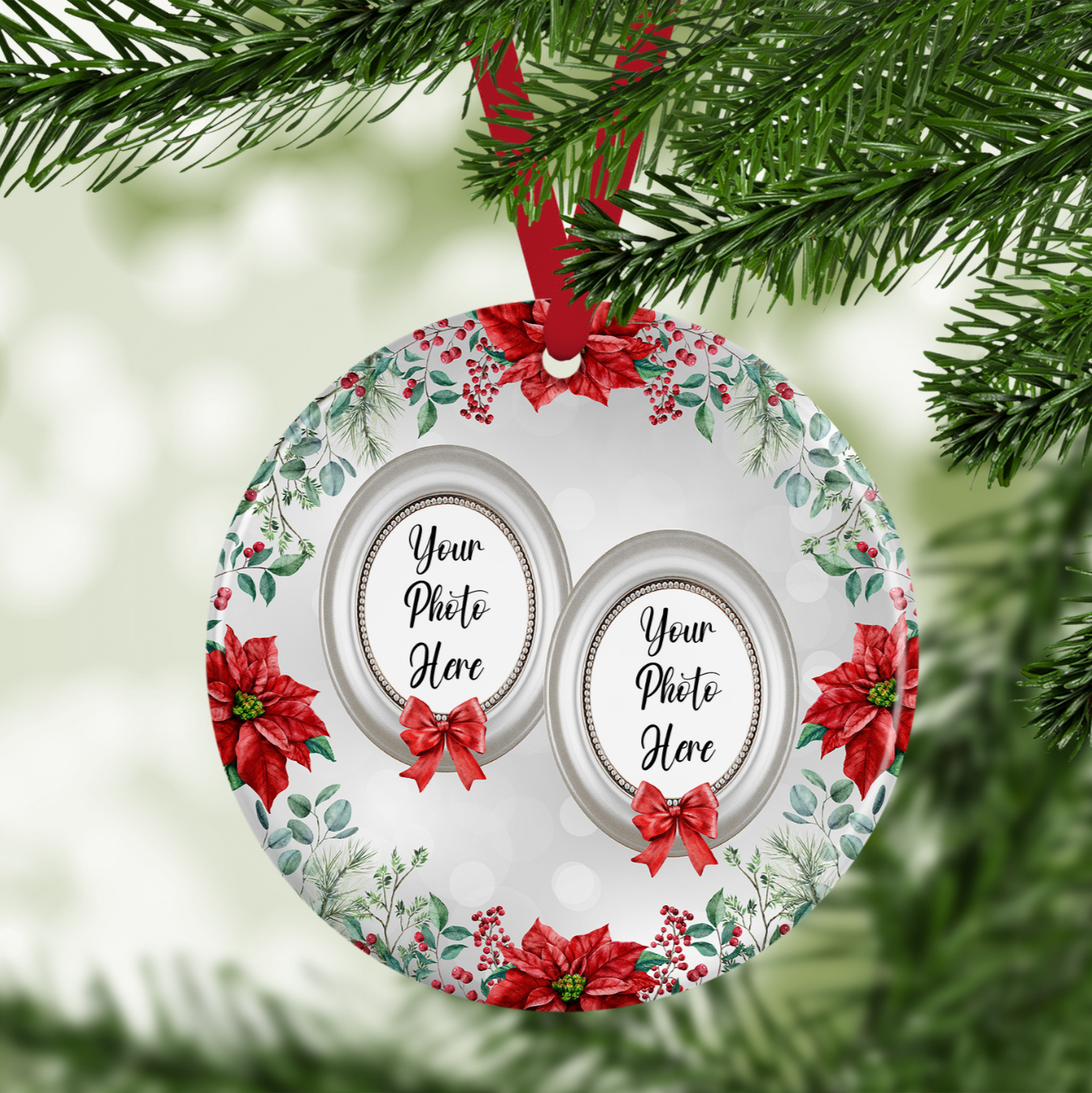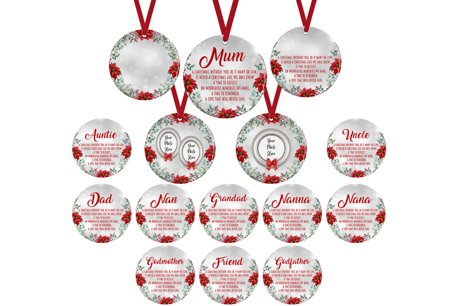 Honour loved ones with this quirkily sweet Photo Memorial Christmas Tree Decoration. Choose single or double-sided for a personal touch. One side features a photo, the other reads "missing you at christmas words". Option to include 1 or 2 photos