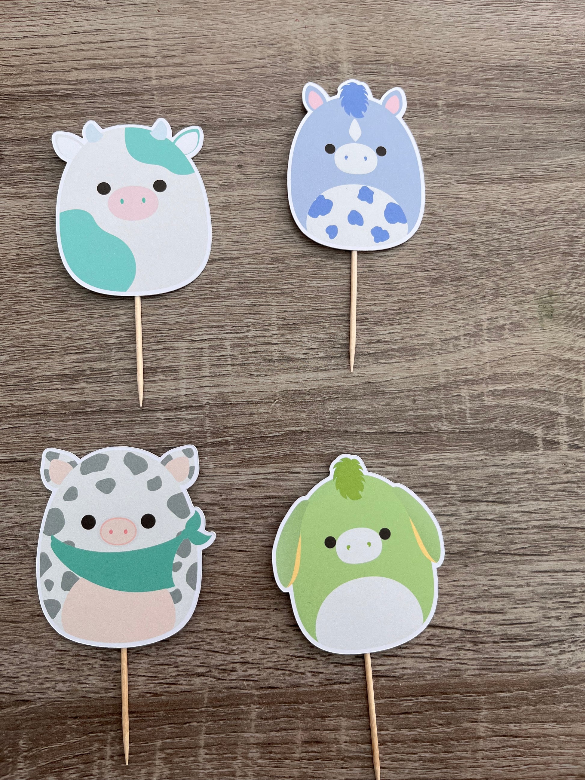 Cocktail sticks are provided to attach yourself. Bring your cupcakes to life with these adorable Squishmallow characters.