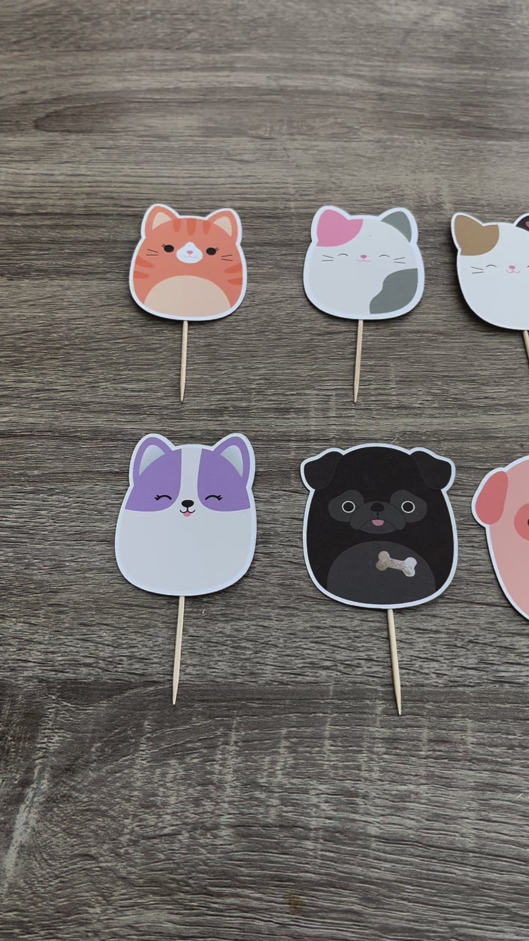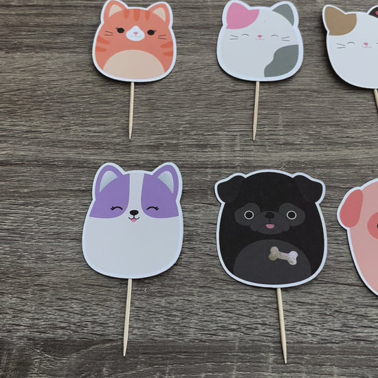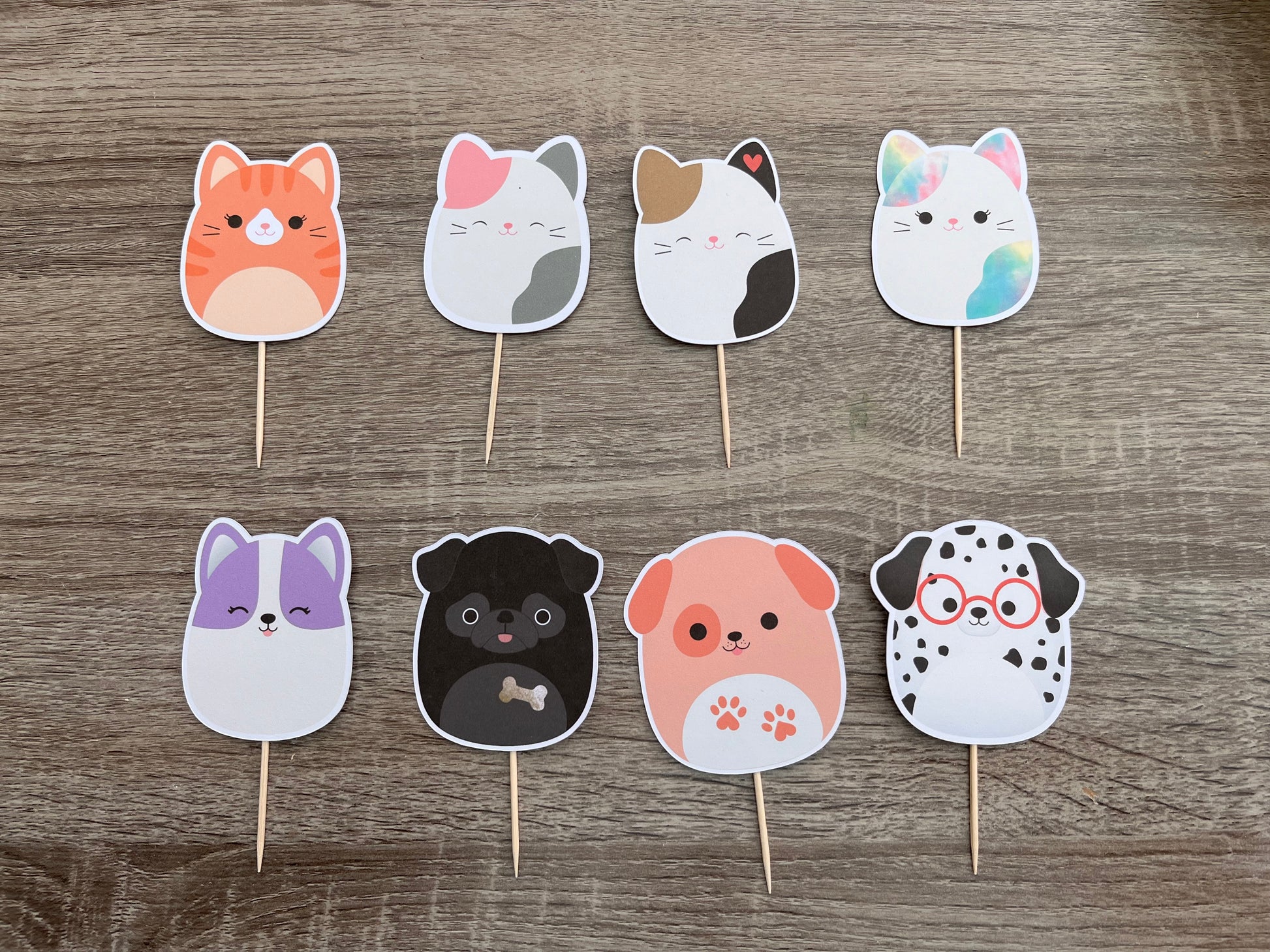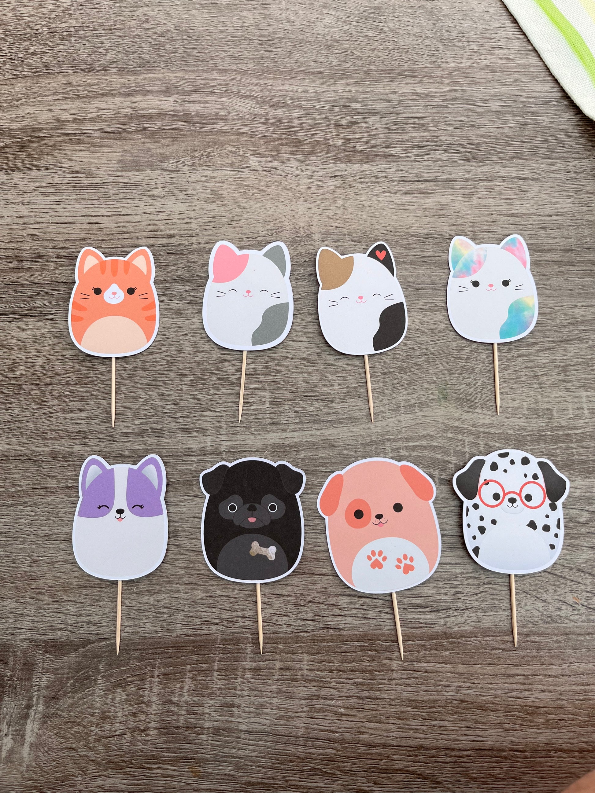 Set of 8 cat and dog mix Squishmallows CupCake Toppers