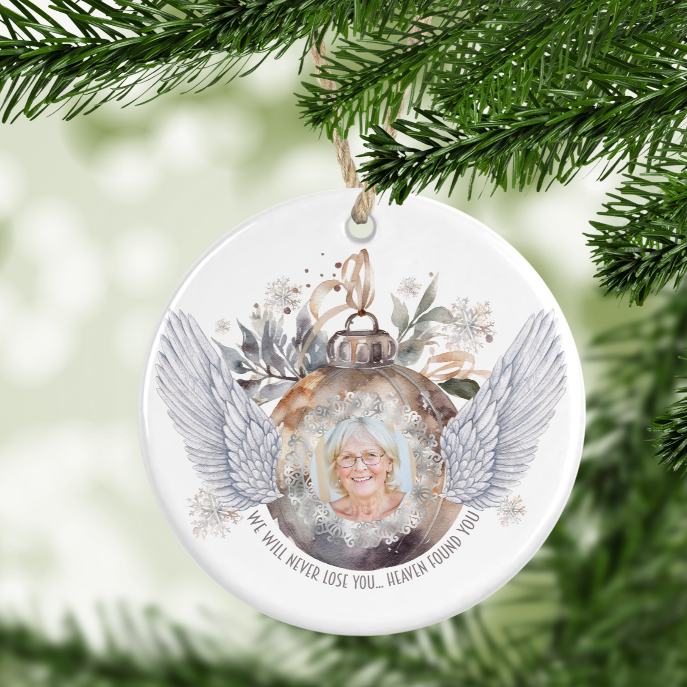 We Will Never Lose You, Heaven Found You Photo Memorial Christmas Tree Decoration
