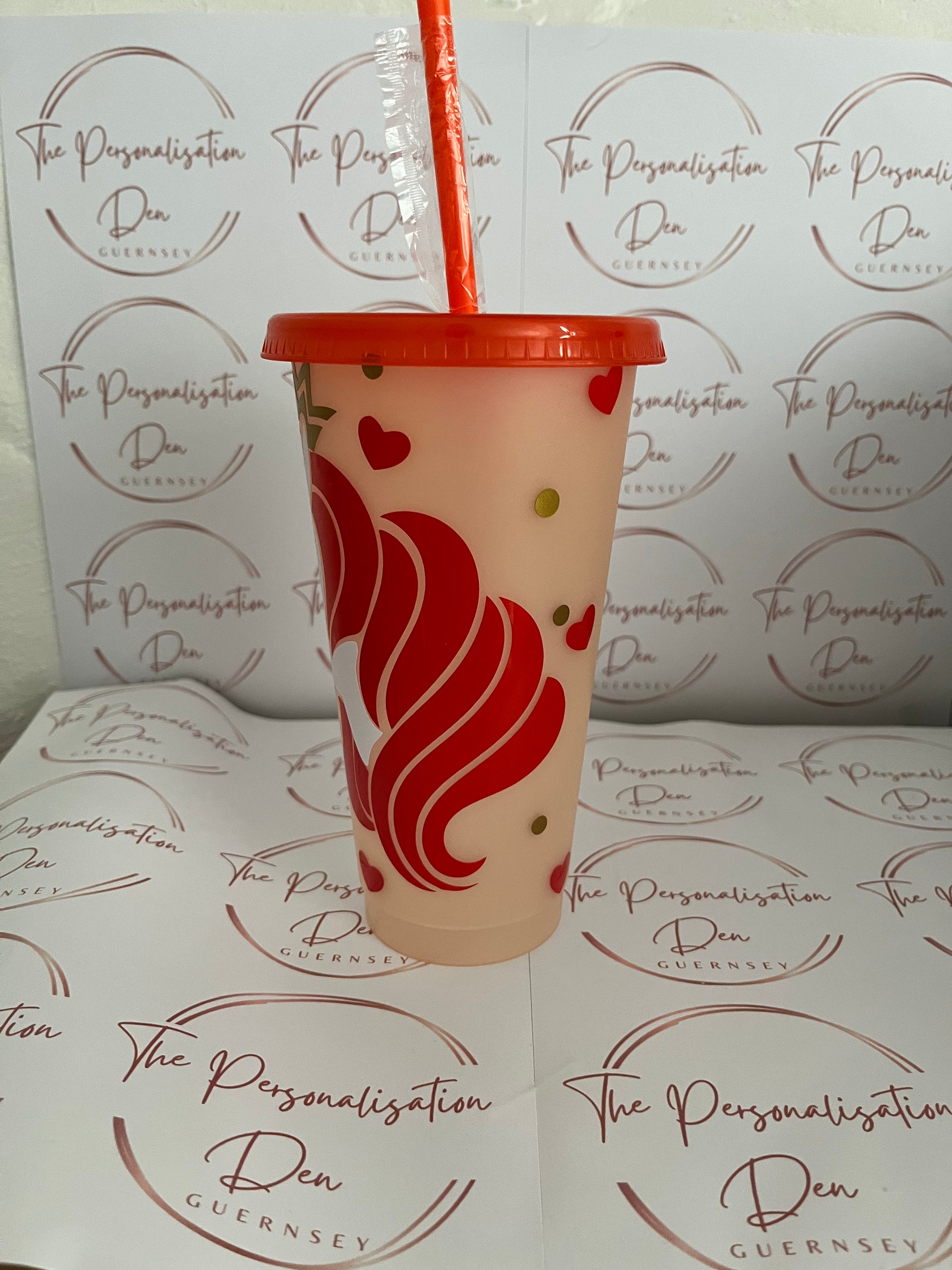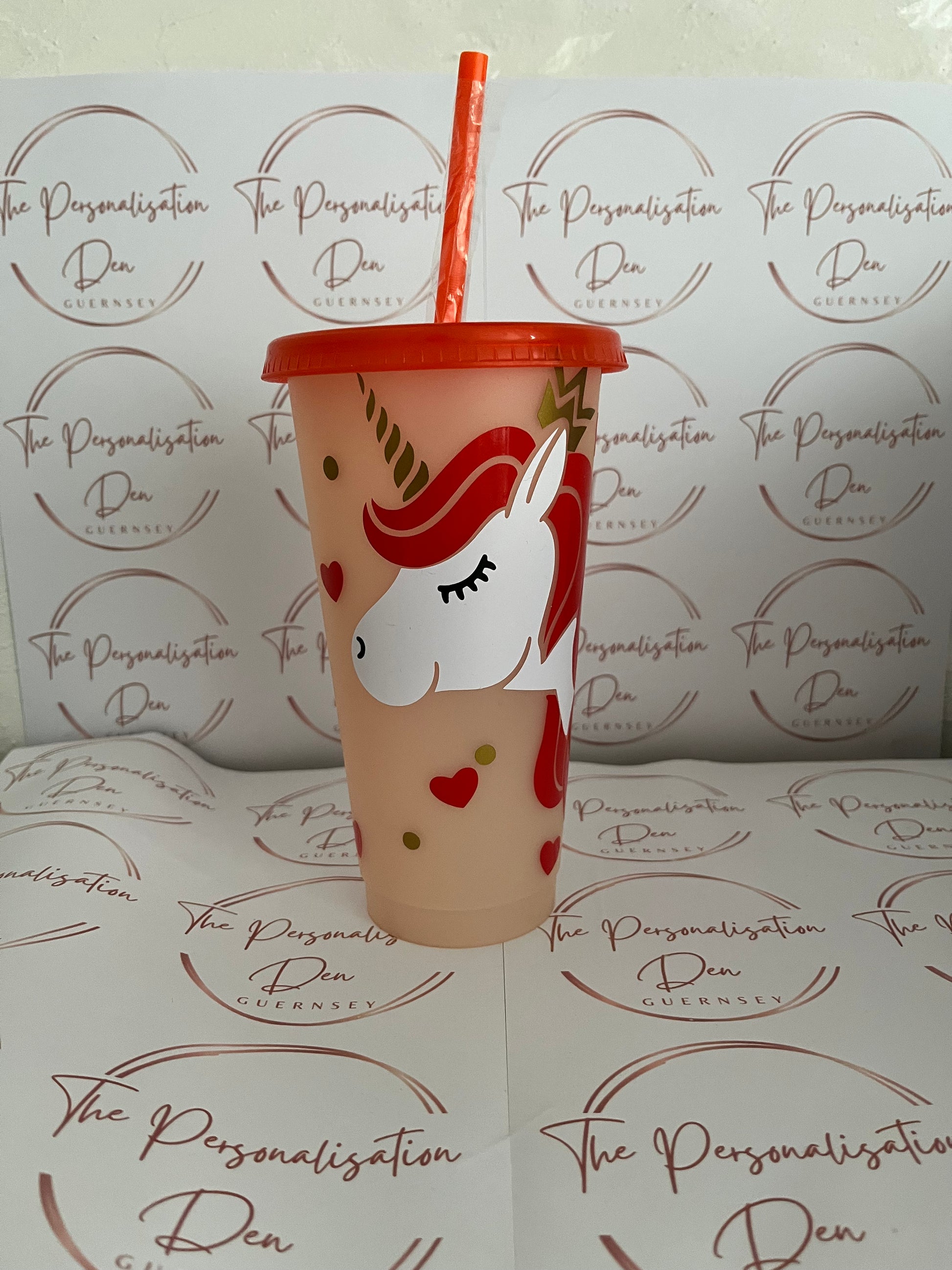 20oz red cold cup in a Unicorn theme. This cup features a unicorn design.